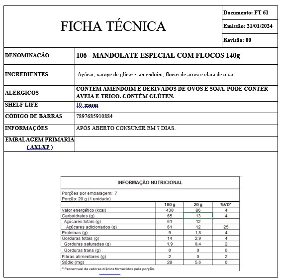 MANDOLATE ESPECIAL C/ FLOCOS PCT 140G